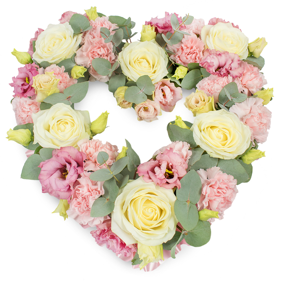 Pay tribute to your loved ones with our Charming Memorial Flower Bouquet. This exquisite arrangement features white roses, pink carnations, pink lisianthus, and eucalyptus leaves, thoughtfully designed to create a serene and beautiful display of remembrance.